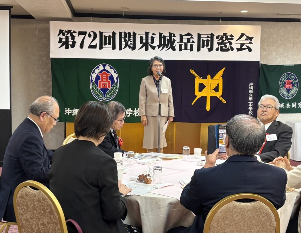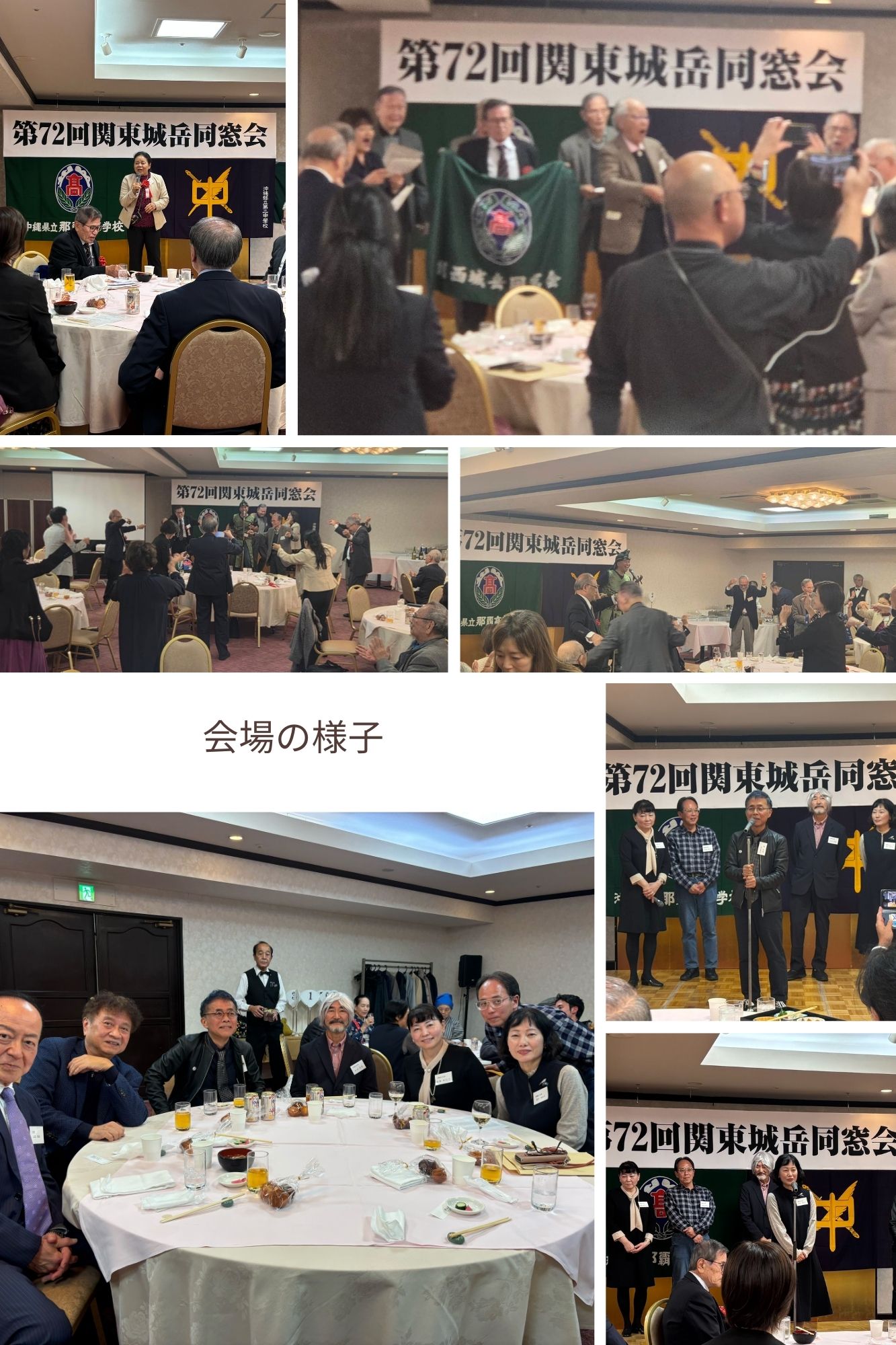 HOME > 総会・懇親会 > 総会・懇親会 2025年度関東城岳同窓会 総会・懇親会が10月26日(日)11:30〜喜山倶楽部(日本教育会館9階)にて開催されました。 2026年2月8日 今年も多くの方にご参加いただき有難うございました!このように毎年集まり、お互いの”今”というかけがえのない時間を共有しています。 大濱会長のご挨拶で開会しました。 同窓生による余興の数々。最後はカチャーシーで盛り上がりました。 ◉会場の様子 2026年度同窓会のお知らせ◉日時:2026年10月25日(日)11:30開始◉会場:日本教育会館9階 喜山倶楽部 皆様の予定表に加えていただき、是非ご参加くださいますよう宜しくお願い申し上げます。 Post Share Pocket Hatena LINE URLコピー -総会・懇親会